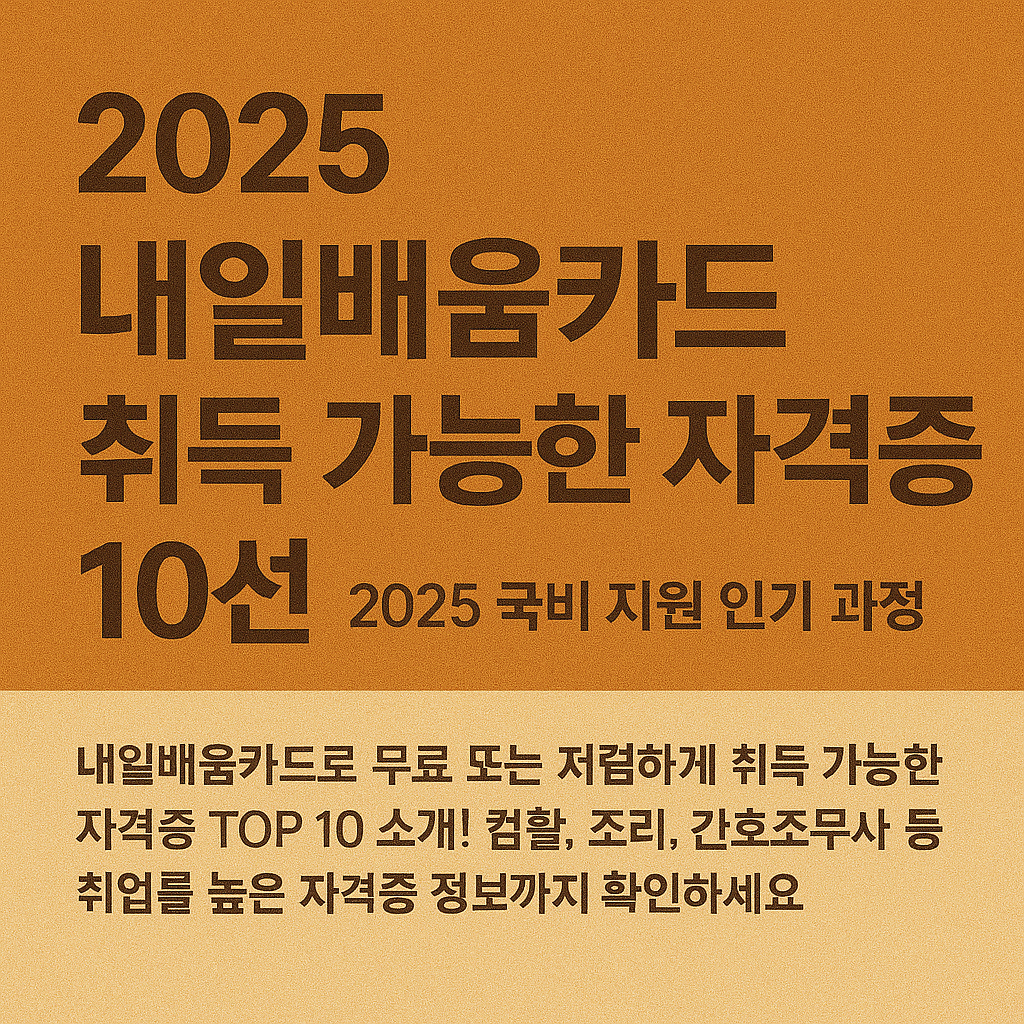내일배움카드로 무료 또는 저렴하게 취득 가능한 자격증 TOP 10 소개! 컴활, 조리, 간호조무사 등 취업률 높은 자격증 정보까지 확인하세요.