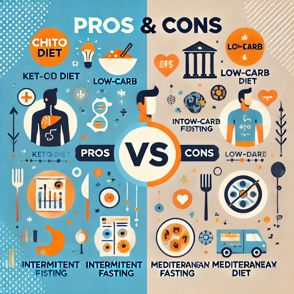 각 다이어트 방법마다 장점과 단점이 있습니다. 나의 라이프스타일, 목표, 건강 상태를 고려하여 가장 적합한 다이어트를 선택하는 것이 중요합니다.