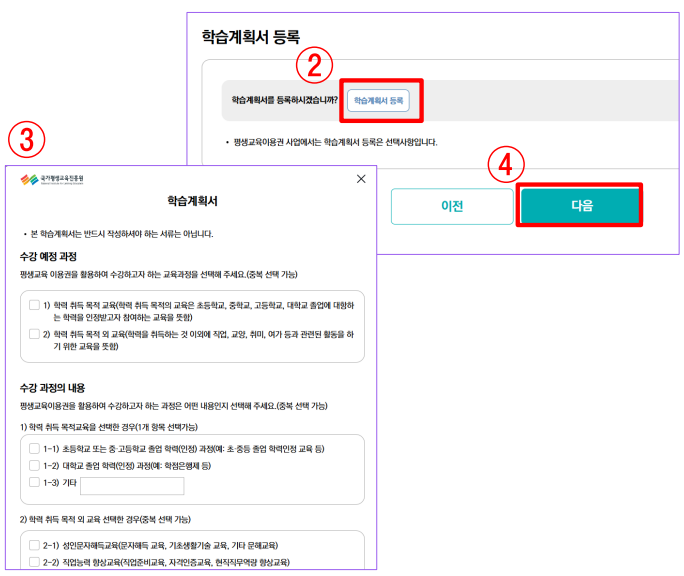 2-5. 신청서 작성 ([선택] 학습계획서 등록)