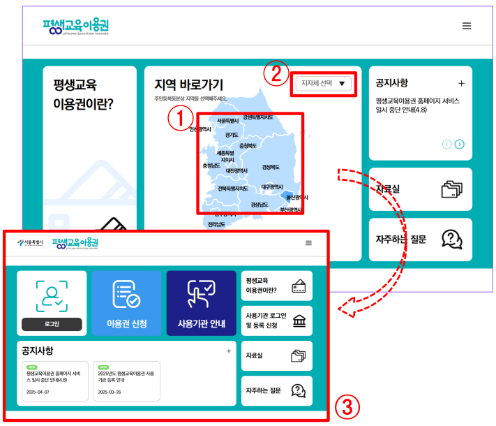 - 지자체별 평생교육이용권 페이지로 이동