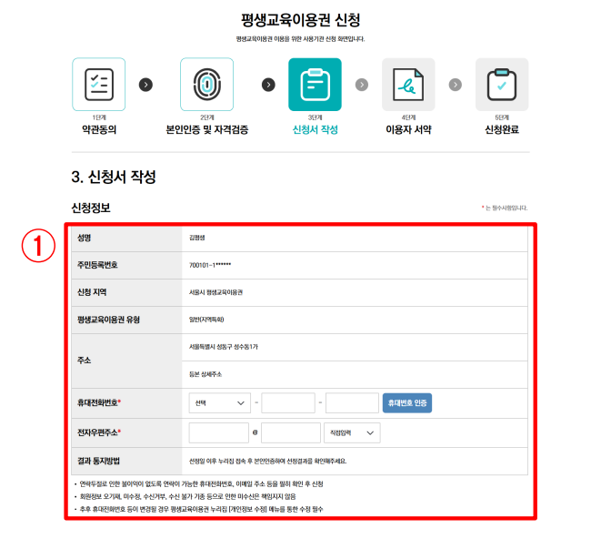 1-5. 신청서 작성 (통지 받을 연락처 작성)