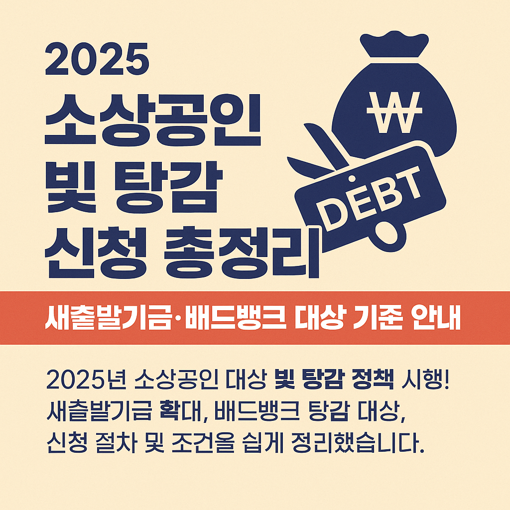 2025년 소상공인 대상 빚 탕감 정책 시행! 새출발기금 확대, 배드뱅크 탕감 대상, 신청 절차 및 조건을 쉽게 정리했습니다. 꼭 확인하세요!