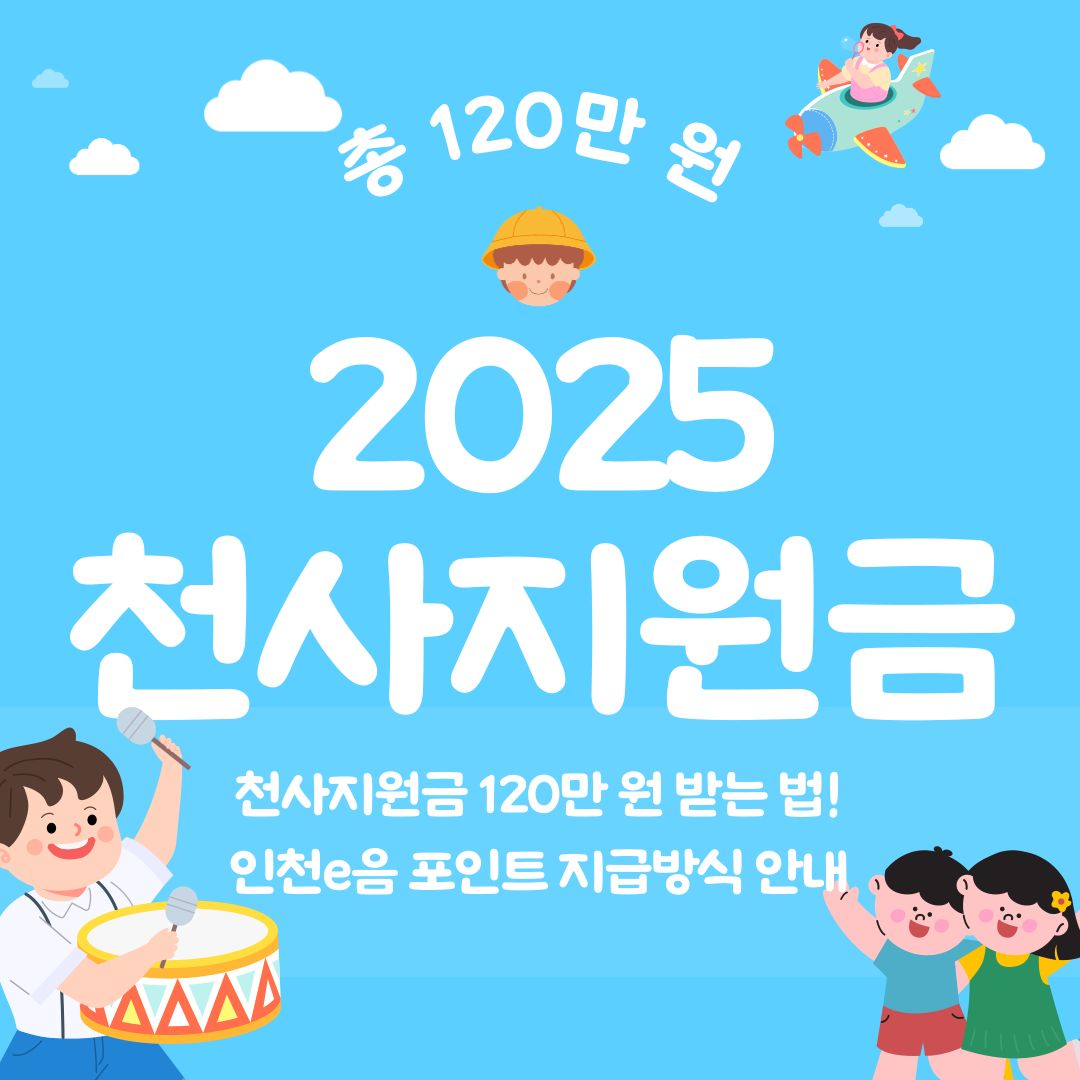2025 인천 천사지원금은 총 120만 원을 연령별로 나눠 지급합니다. 인천e음 포인트 지급 방식, 사용처, 유효기간 등 핵심 정보를 확인하세요.